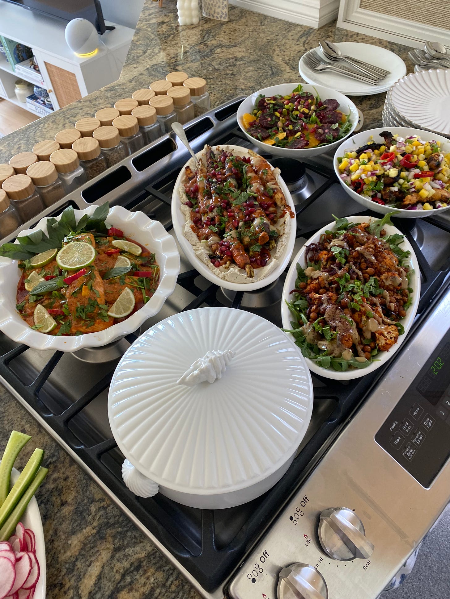 I learned how to grate ginger literally the day before (thank you, YouTube!), figured out harissa spice levels through trial and taste (some of the batches were really spicy), and created a menu of 7 dairy-free dishes that I’d never made before using Pinterest and ChatGPT. This weekend taught me that cooking for a crowd doesn't have to be intimidating when you approach it with the right strategy and creativity.